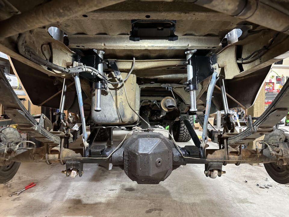 The stock electric-shift transfer case was retained, and it’s mated to the transmission via an adapter from Advance Adapters.