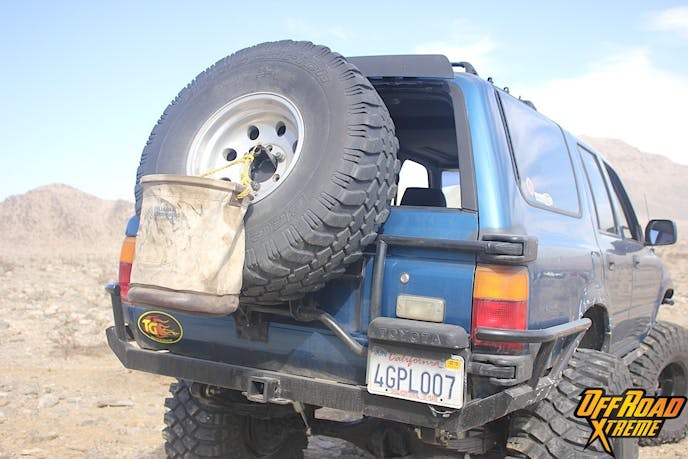 Cox utilized many Trail Gear parts, as he got roughly $2000 off suspension components by ordering a full package tailor made to his Toyota. TrailGear also sourced the front bumper as well, but when it came time for the rear bumper, Cox took things into his own hands, fabricating a custom solution by cutting off the factory receiver hitch and attaching his own mandrel bent assembly to it.