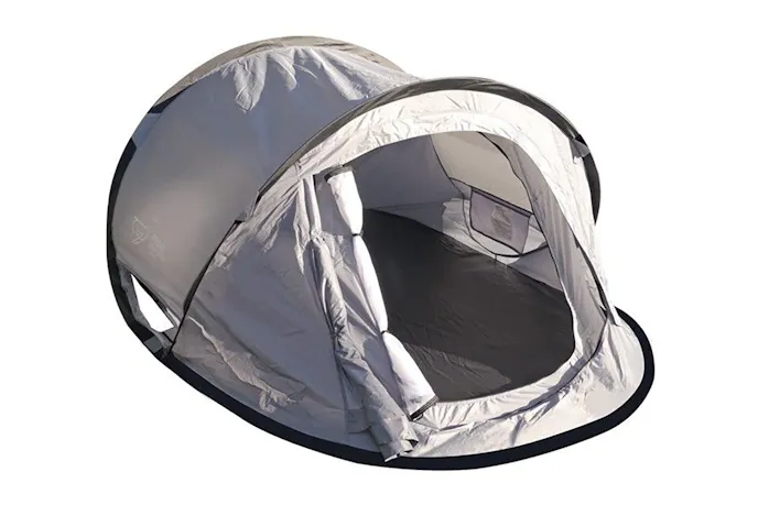 The tent sleeps two people comfortably. When it’s time to pack up, it quickly folds up flat as a pancake and stores away in the heavy-duty canvas carry bag. Available for only $119, this might be the cheapest, fastest, and easiest sleeping partner your dad has ever laid eyes on.