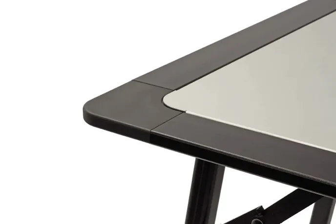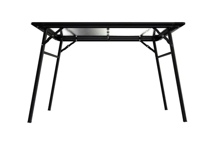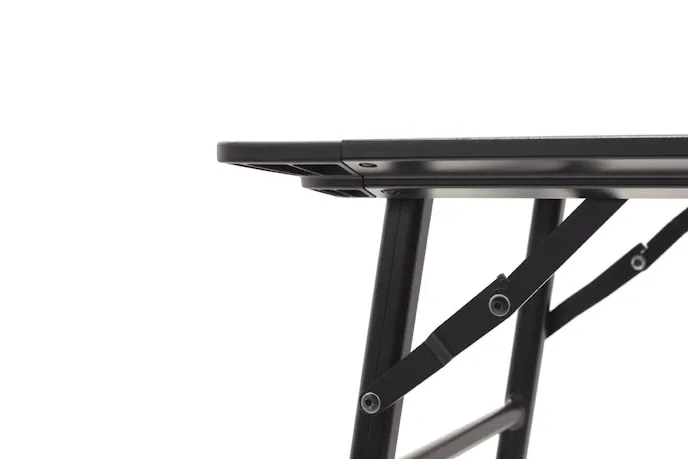 - Extruded aluminum frame nests into the storage brackets and is secured with the table latch.