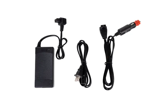 - Efficient and powerful DC compressor runs on 12, 24 volts, or on wall power using AC Adapter.