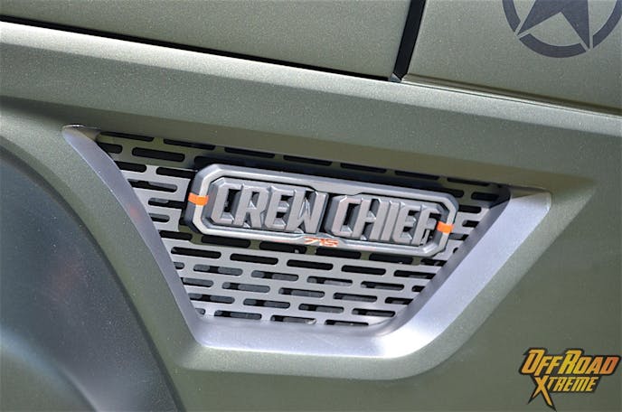 One glance at the Trailcat and it’s obvious that the modifications go well beyond the power train. Jeep engineers also made some significant changes to the platform itself, chopping the windshield by two inches and extending the wheelbase to 108 inches to provide room for the new hardware bits.
