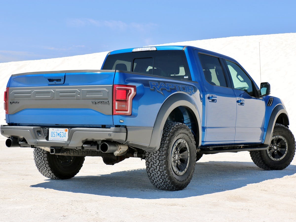 We loaded our suitcases onto and under the rear seats of the 2017 Ford F-150 Raptor SuperCrew and hit the road, ventilated front buckets on full blast. After a while, we were a giant streak of blue rocketing westward on I-10.