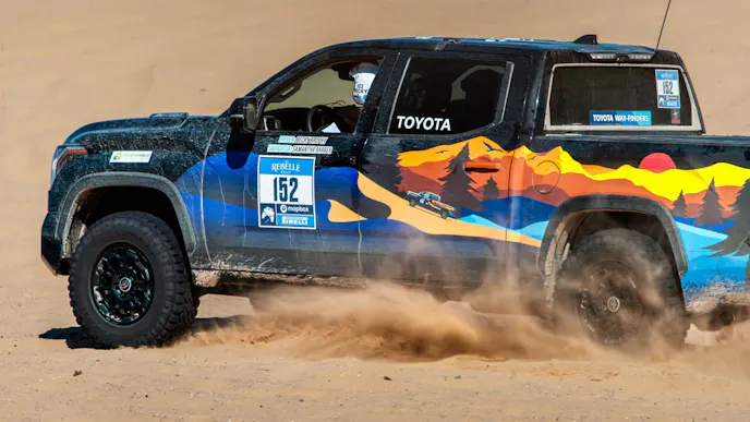 The Electrified class has grown substantially through the years. In 2020 there was only a Rivian R1T and a Mitsubishi Outlander PHEV in the mix. By 2022 there were seven EVs. The seven consisted of three Jeep PHEVs, two all-electric Rivians, and two hybrid Toyotas. For 2023, the number of Electrified class competitors increases to 12. The tally includes a pair of Toyota Tundra hybrids, a pair of Toyota Sequoia hybrids, three Jeep Wrangler 4xes, a Ford Mach-E Rally, and four Rivian vehicles. The Rebelle Rally notes that the battery-electric vehicle program is limited to manufacturer entries due to the logistics of remote, rapid charging. Additionally, there may be more hybrid vehicles in the competition fielded by privateer teams.