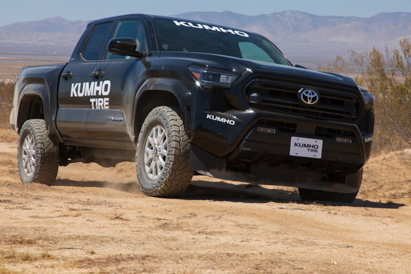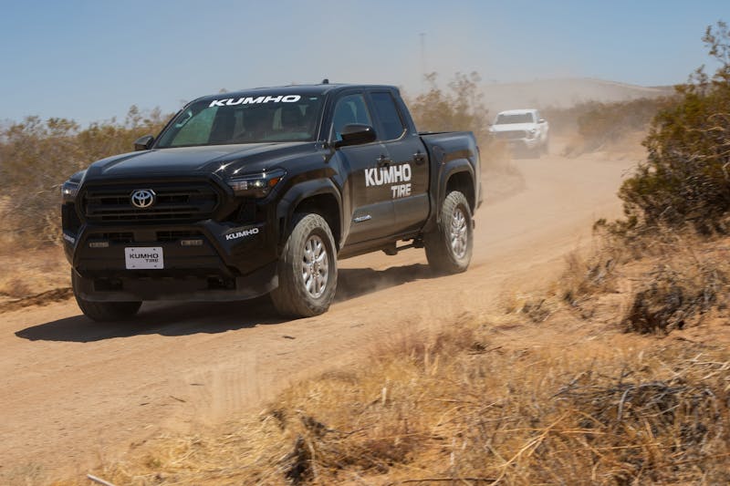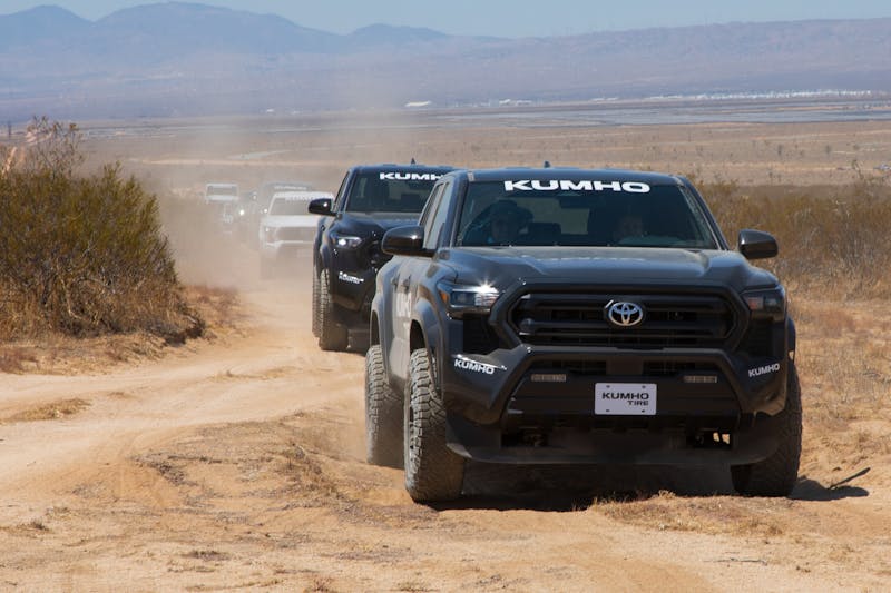 In order to get a feel for its newest tire, Kumho invited us out to the Hyundai Motor Group California Proving Grounds (CPG) in Mojave, California, where the team had setup four different demonstrations based on typical driving scenarios. These included an autocross with wet and dry pavement, a highway drive, an overland trek across a desert trail, and finally a mud bog.