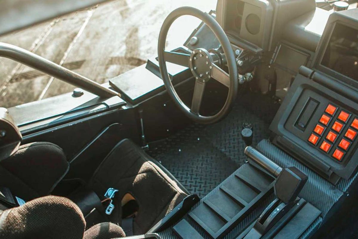 The full-scale version of the off-roader is based on a Kevin Carroll chassis that was sourced from Red Dot Engineering. The cabin of the donor vehicle was not nearly large enough to match the project’s requirements. Therefore, the chassis had to be chopped and modified to fit the life-size Warthog dimensions.