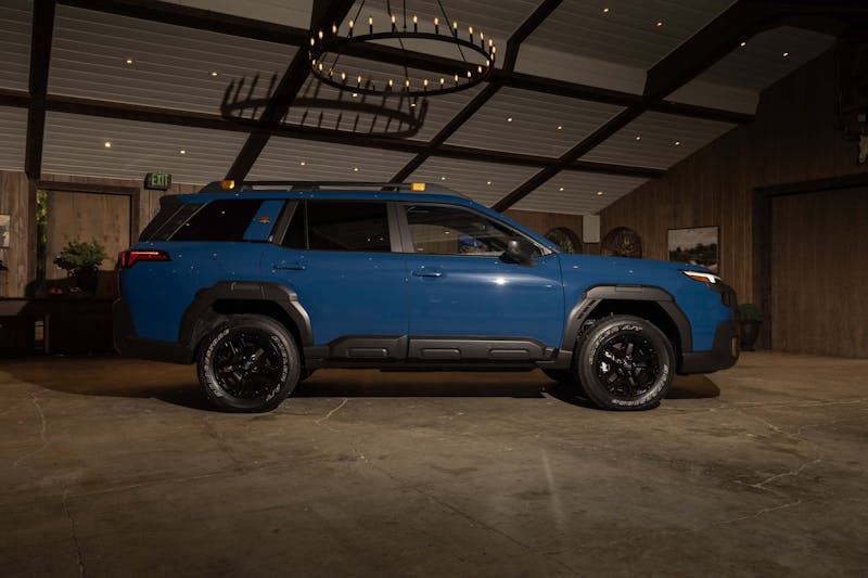 The styling of the all-new 2026 Subaru Outback Wilderness is sure to be a contentious topic around the water cooler. The SUV includes standard ladder roof rails with measurement markers and a massive 800-pound static load rating. The roof rating drops to 220 pounds of dynamic load while moving, which is still more than enough for an adequate rooftop tent. Matte black side mirrors, side cladding, and headlamps; an expanded front bumper; and massive SUBARU grille are all unique features of the Wilderness. Anodized copper-finish exterior accents are included on the roof rails, foglamps, and reverse lights.
