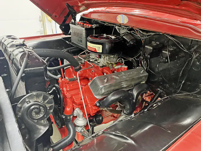 Jay’s truck is still outfitted with its original body, but it has been sealed in six coats of Ford-spec red paint. Inside, the truck retains its factory equipment but features a reupholstered bench seat and a Motorola AM/FM/eight-track stereo system, among other things.