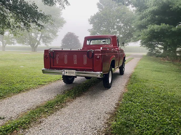 His truck is powered by its original 292 cubic-inch Y-block V8 engine. The powerplant has some modifications including “Thunderbird 312” heads and an Edelbrock AVS2 600 cfm four-barrel carburetor. The engine is mated to a BorgWarner T98 four-speed manual transmission. This heavy-duty, top-loading transmission has a cast-iron case and a “granny” 6.39:1 First gear ratio. Power is routed through a Dana Spicer Model 24 divorced transfer case.