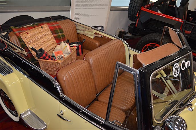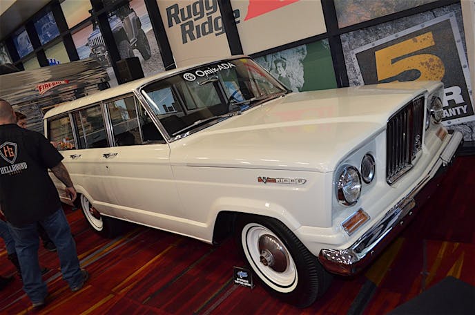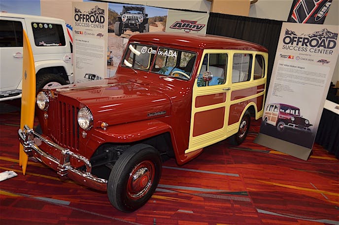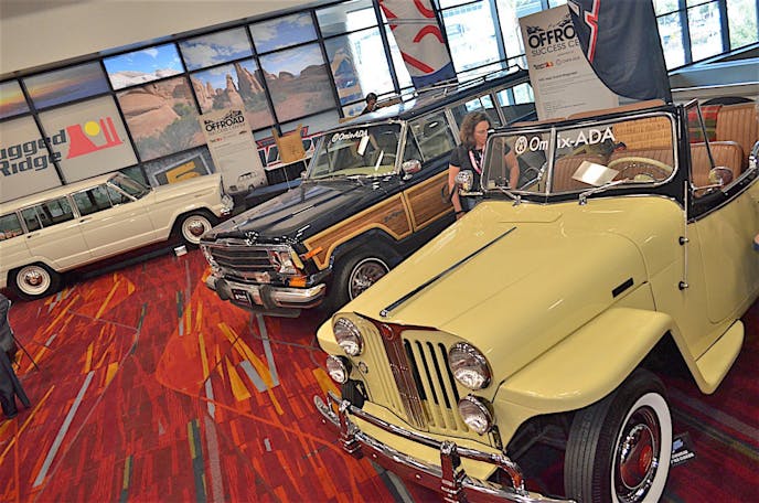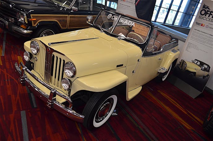The Willys Overland VJ Jeepster was created to bridge the gap between the utilitarian post-war universal CJ series and the 1-ton family-oriented station wagons. The center showcased a 1949 VJ Jeepster which was only offered in rear-wheel drive. This model Jeep did not attract the traditional Willys customers because of its sportier look.