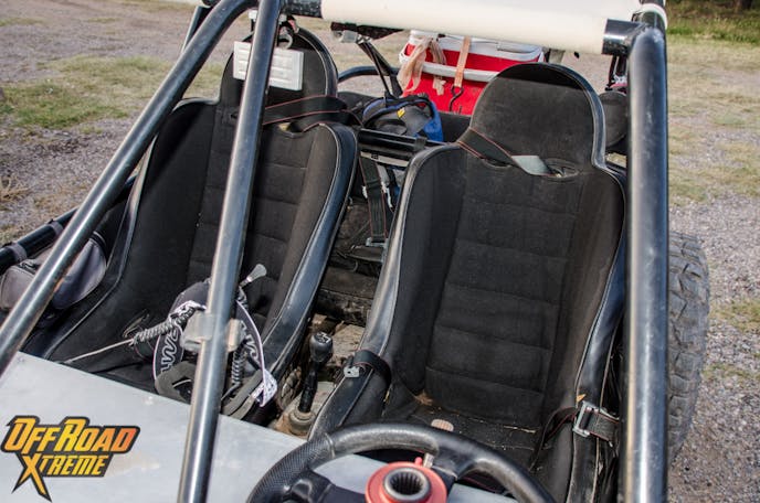 The PRP Competition Pro seats keep Jim comfortable on the trail all day, while the rear PRP bench seat allows his family to come along on trips as well. The steering wheel is removable to allow for easy ingress and egress.