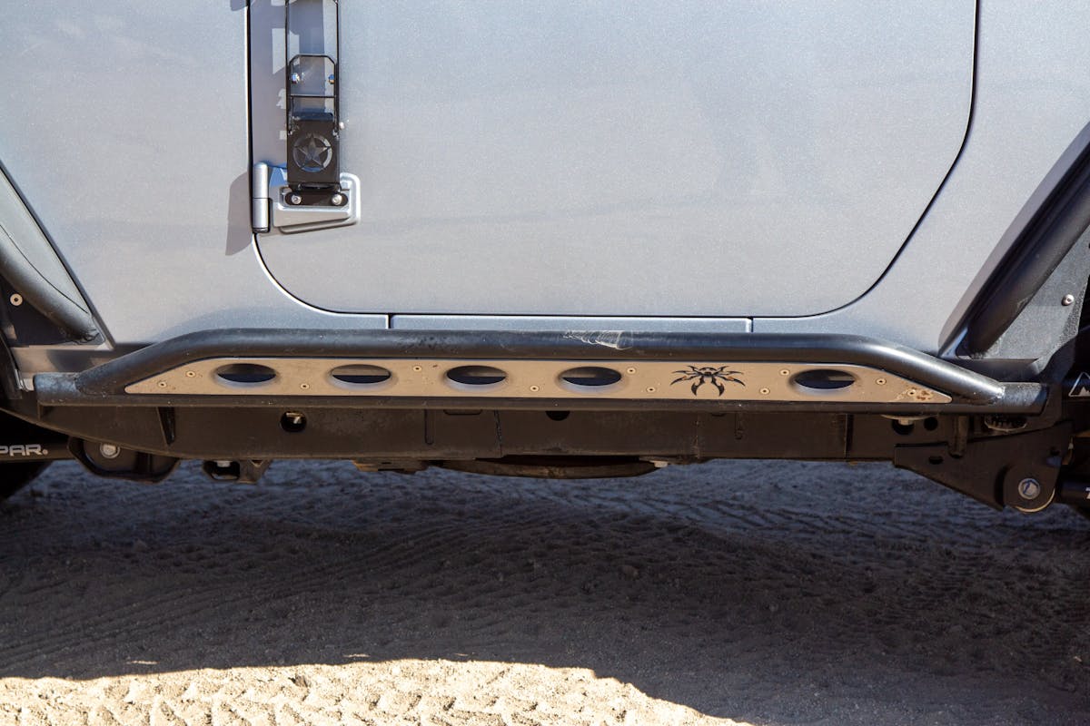 Surrounding the tires are Poison Spyder upgrades including rock sliders, fenders, and bumpers. “I’ve gotten a lot of use out of the Poison Spyder parts,” said Richie. “They can support my full body weight, which is great since I have to access my roof constantly. I like that the front bumper can also fit a winch. I’m using the Smittybilt XRC 9,500-pound version, which I find is more than enough for the Jeep.”