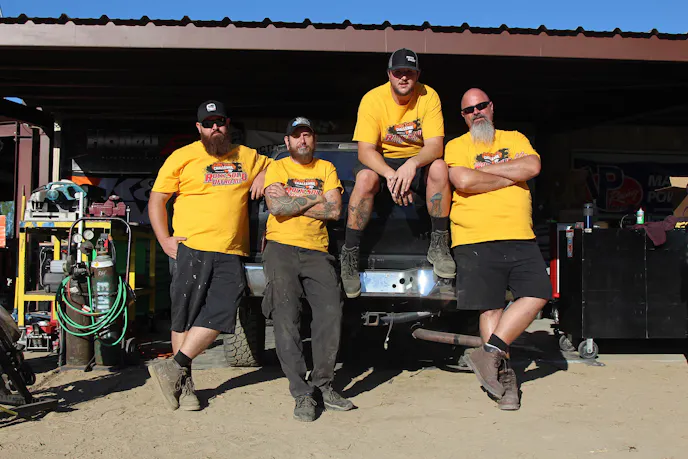 Using $2,500 in Summit Racing gift cards and $3,500 in cash to purchase their trucks and junkyard parts, this battle would require more than just fabrication skills. Each team was given a head-start to carefully select their own truck and build strategy to best utilize that budget for the off-road quadrathlon (barrel race, jump contest, tug ‘o war and short course) – taking place at the conclusion of the build phase. However, they still had a limited time to turn those dreams into reality – with no air tools and other limitations from building on-location in the desert.