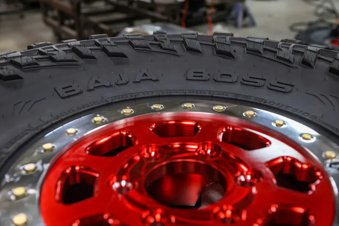 The Mickey Thompson Tires are really good grip wise really, good traction, and a phenomenal trail tire. They worked with us to develop the four ply sidewall and improved the durability a ton. It is right up there with the all the other competition tires.