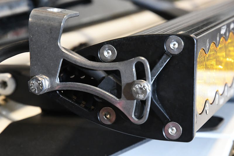 We selected the Baja Designs OnX6 Straight Dual Control LED 50-Inch Light Bar for roof line projection that provides a massive 32,760 lumens. Its dual control feature allows us to switch between amber and clear light, flood and spot optics, or use all of them together at once, perfect for different weather and terrain conditions.