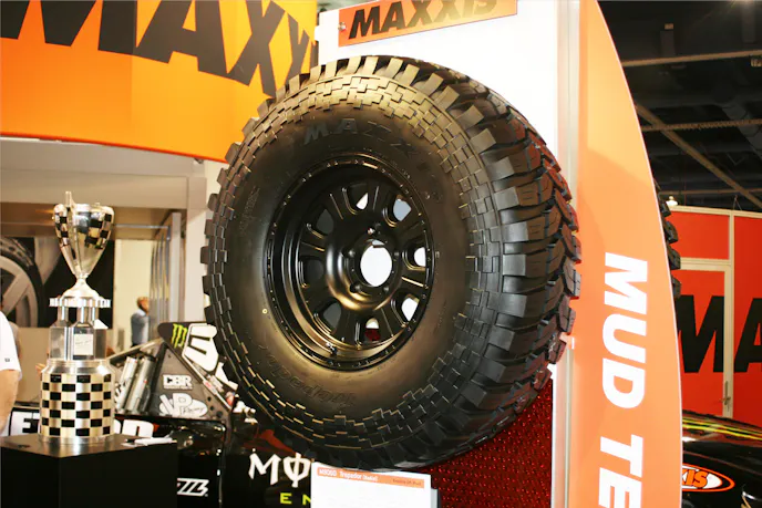 At the 2013 SEMA Show, Maxxis had a lot to be proud of, but it was its three truck and off-road tires we were primarily interested in, and those included the Bighorn MT-762 Radial Mud Terrain, the Creepy Crawler M8090 Extreme Off-Road tire, and the Trepador M8060 Extreme Off-Road tire.