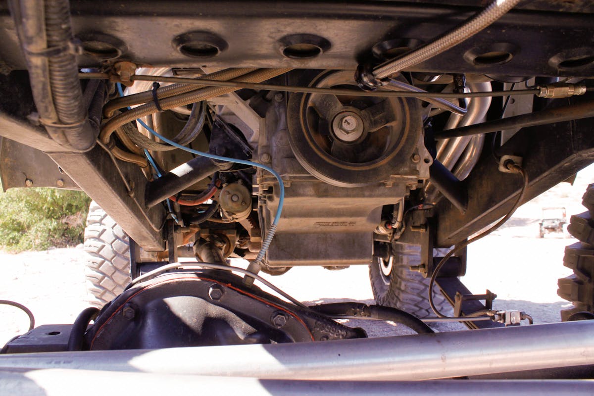 Behind the LS1 is a stock T350 transmission. The mostly stock powertrain keeps this Jeep extremely reliable. Although working on Jeeps can be fun, when you already have race vehicles to maintain, having a trustworthy and reliable Jeep is nice. Mated to the T350 is Dana 300 with a 4:1 gear set in it, allowing the Jeep to crawl at very low speed. When combined with the 4.88:1 gears in the axles, this Jeep has a great balance between crawl ratio and road speed.