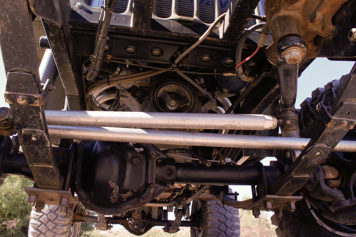 The front axle is a Chevy Dana 44 that has been cut down to fit the size of the Jeep, and it uses chromoly axle shafts, an ARB air locker for maximum traction, and 4.88:1 gears. The rear axle is a Dana 44 out of an International Scout, and it uses upgraded 35-spline chromoly axle shafts compared to the 30-spline shafts it once had. Like the front axle, the rear also uses an ARB air locker and 4.88 gears. “I picked Dana 44s over Dana60s to keep the Jeep light,” said Matthew. “The Jeep only weighs 3,400 pounds, and we just wanted to keep it light and nimble, and Dana 60s would weigh it down a lot.”