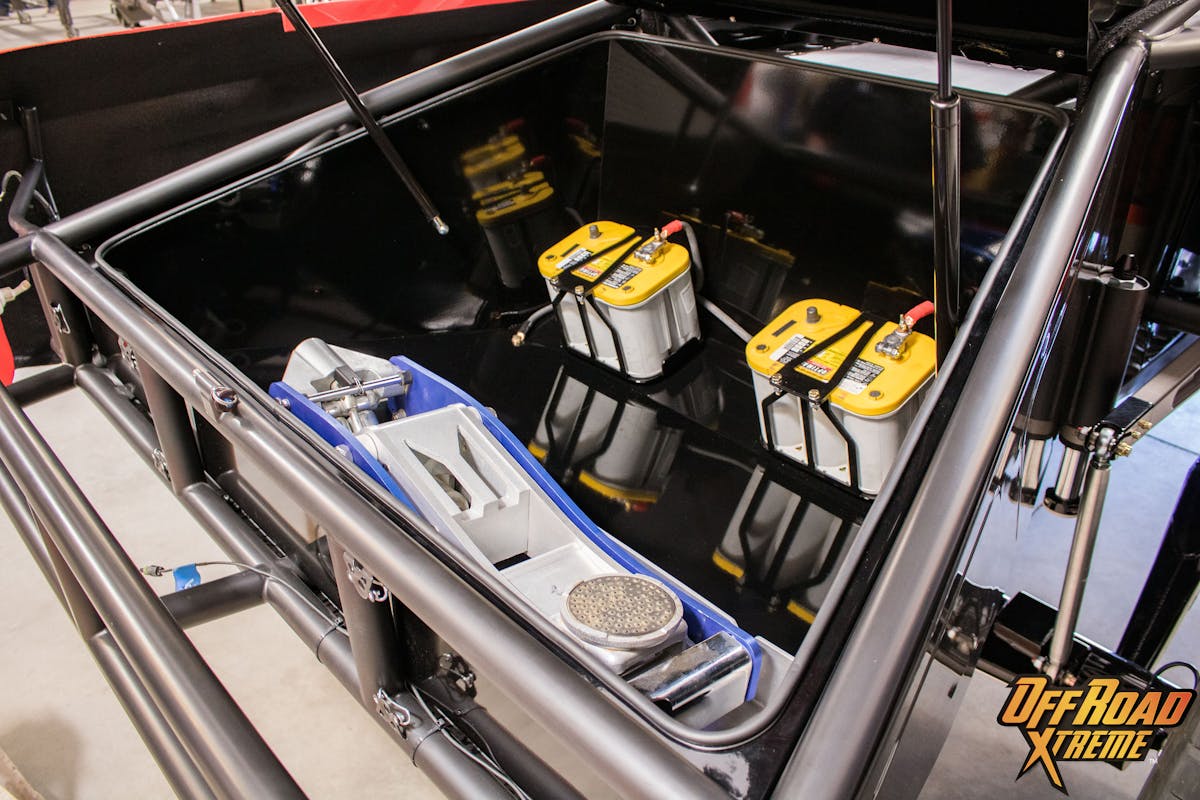 This little truck hits the scales at 6,200 pounds, which is heavy for a vehicle of this size. Lets just say, it has been slightly over-built but is very well balanced front to back with near equal weight distribution of 52% to the rear. With Rob’s amazing performance know-how and attention to detail it is an off-road hotrod that works as good as it looks.