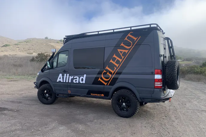 The van only has 34000 miles on the odometer and comes equipped with three locking differentials. The off-roader rides on a set of 18-inch alloy wheels, which are wrapped in 37-inch BFGoodrich MT3 tires. A 4.75-inch suspension lift helps accommodate the larger wheels of the Sprinter 2500 IGLHAUT Allrad 4X4.