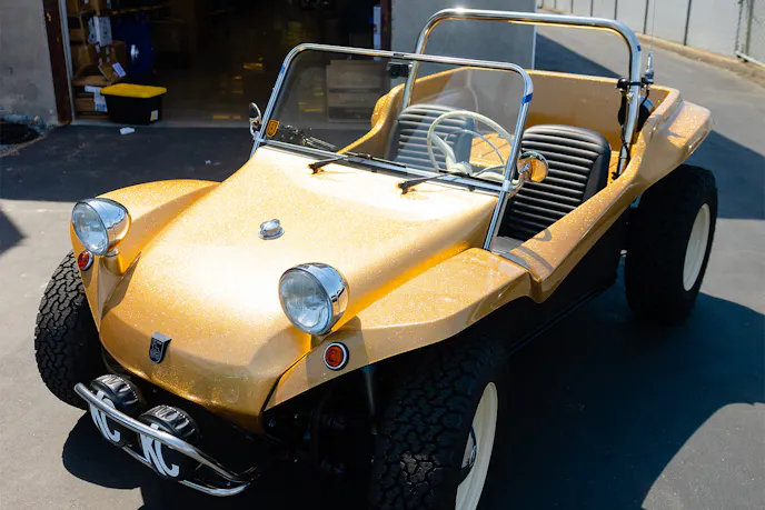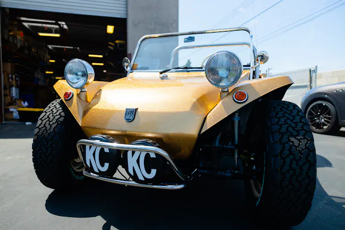 All of the Manx VW cars are fitted with authentic period-correct parts from the day, including EMPI, Bilstein Shocks, KC Hilites, and General Tires.