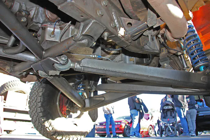 Of course, practically every Trophy Truck has to have the mechanical chops to compete, and that takes a V8. For Nick’s Ranger, he went with the biggest – the LS7 – and had it squeezed into the tiny Ranger’s engine bay. Unfortunately, we couldn’t get a closer look at the motor at SST, but it’s enough to know that it’s there, and it’s big and scary.