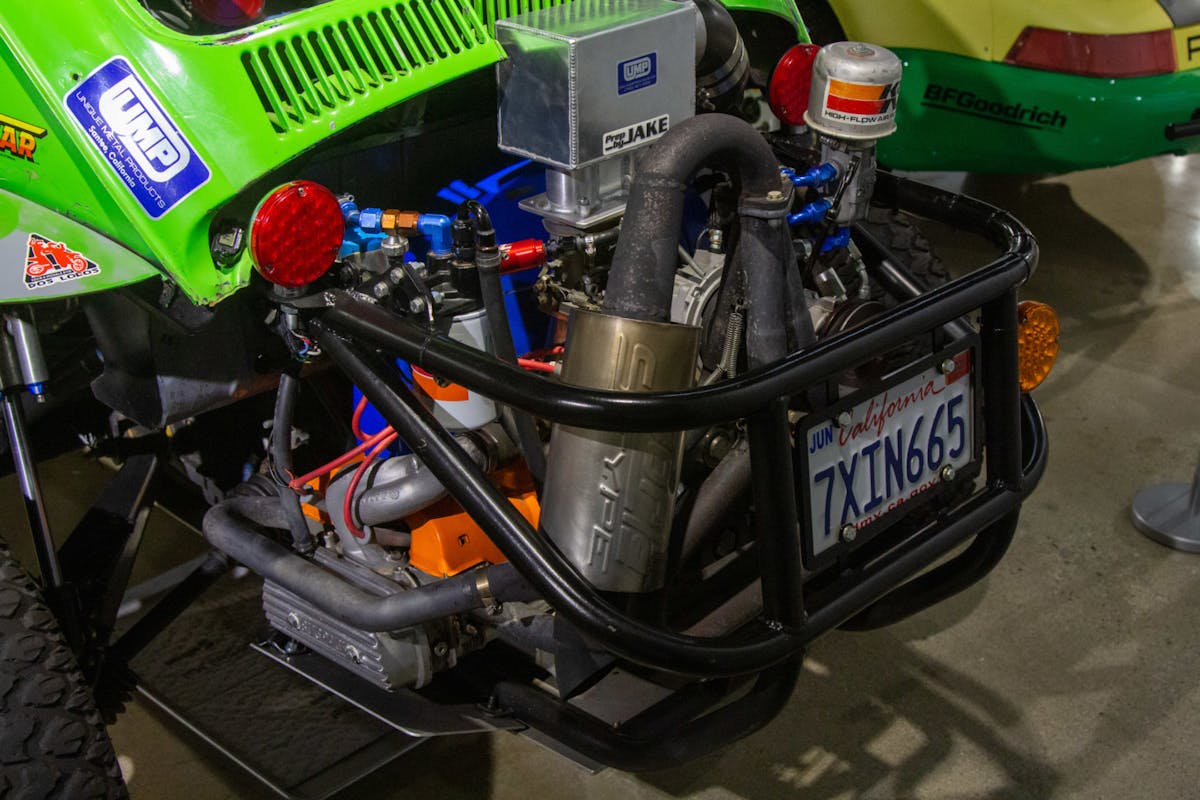 The guys swapped in a Major Performance dual port low compression 1600cc VW engine. It uses a Weber 48 double barrel carburetor. Mated to the engine is a Dave Folts VW racing transmission with Weddle components. Shocks are Fox 2.5-inch-diameter bypasses on the rear, and custom-valved Fox 2.0-inch-diameter smooth-bodies on the front.