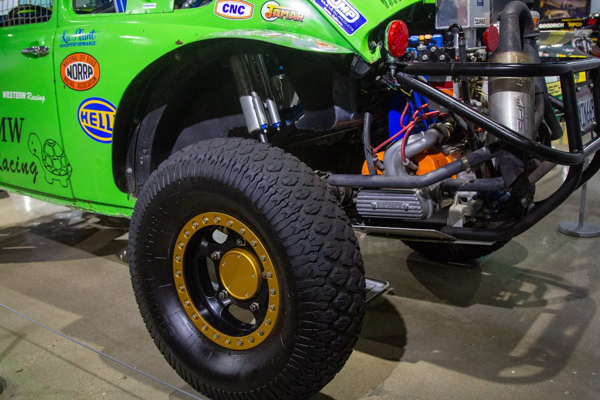 The guys swapped in a Major Performance dual port low compression 1600cc VW engine. It uses a Weber 48 double barrel carburetor. Mated to the engine is a Dave Folts VW racing transmission with Weddle components. Shocks are Fox 2.5-inch-diameter bypasses on the rear, and custom-valved Fox 2.0-inch-diameter smooth-bodies on the front.