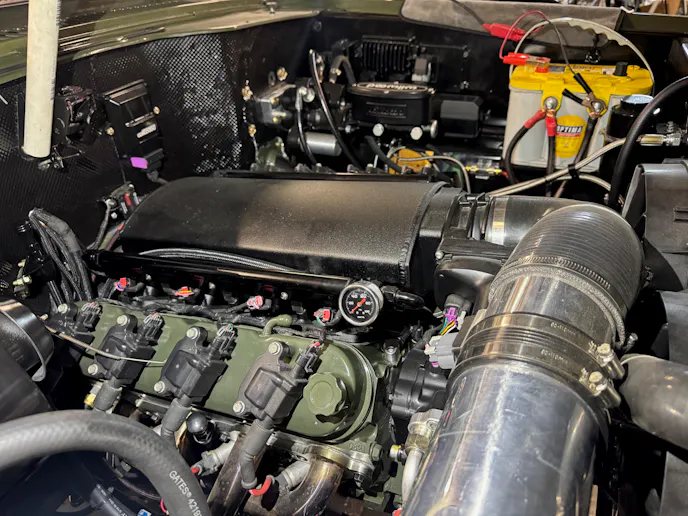 Bolted to the engine is a 4L80E four-speed automatic from a 2005 Chevy Silverado 2500. David scored it on Facebook Marketplace and had it rebuilt with stout internals to handle the LS3’s added power. The NP241C manual-shift transfer case was another Marketplace find, and David rebuilt it before installing it in the Scout.