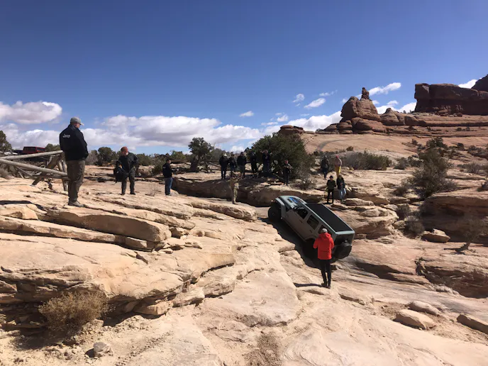 Again, concerned stare, then realization of what I’m saying sinks in, and he cocks his head to listen. We are in my Jeep Wrangler 4xe Rubicon plug-in hybrid crawling up a famous off-road obstacle near Moab, Utah, called Wipe Out Hill. It’s an obstacle that is intimidating by any standards. I notice that he has stopped talking and is holding his breath.