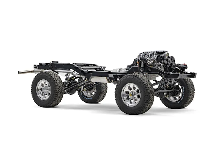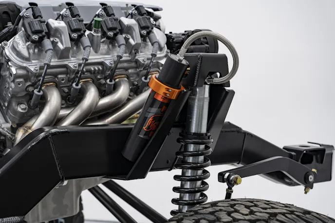 Nestled in the chassis is a LT1 6.2L V8 engine. This 376ci mill punches out 460 horsepower at 6,000 rpm and 465 lb-ft of torque at 4,600 rpm. The V8 is fit with a Holley Mid Mount Accessory System and a custom Velocity 2 into 1 performance exhaust system. It’s fed via a Velocity 22-gallon aluminum fuel tank. A Hydra-Matic 10L80 10-speed automatic transmission mates to the powerplant. Power flows downstream through an Advance Adapters Atlas 2 transfer case, where it’s split to the axles.