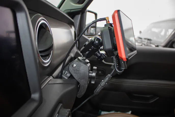 Below, a RAM Tough-Claw is mounted to our ORXtreme JL passenger grab handle. Additionally, we have the RAM Tough-Track affixed to the Jeep JL’s dash holding multiple accessories.