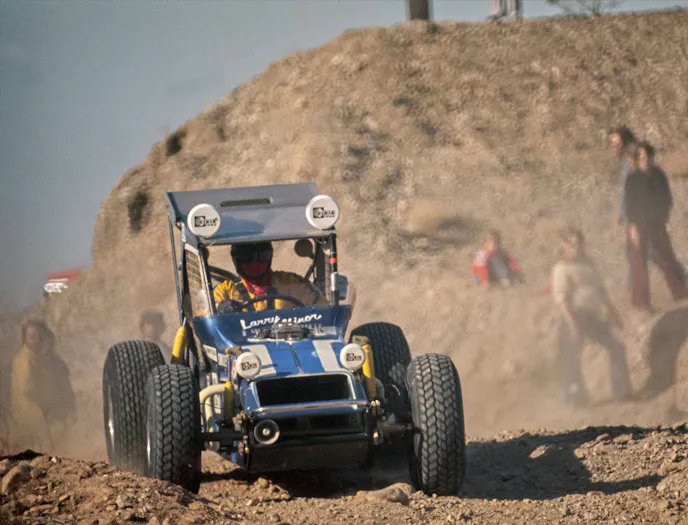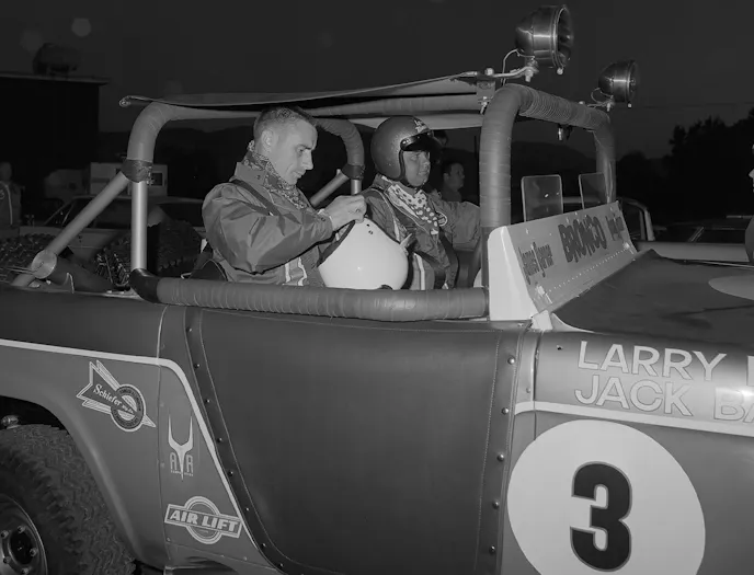 At the first race of the season, the inaugural Mint 400, Larry’s Bronco was not quite done so Stroppe had Larry join his old friend, Jim Loomis, in his Bronco. The pair took the win in the four-wheel-drive class and Top Five overall. Larry was in his own Bronco for the Stardust 7-11 which was basically the same course as the Mint 400 but run twice. Larry and his sand drag engine builder, Jack Bayer, teamed up to take the win in class and overall four-wheel vehicle.