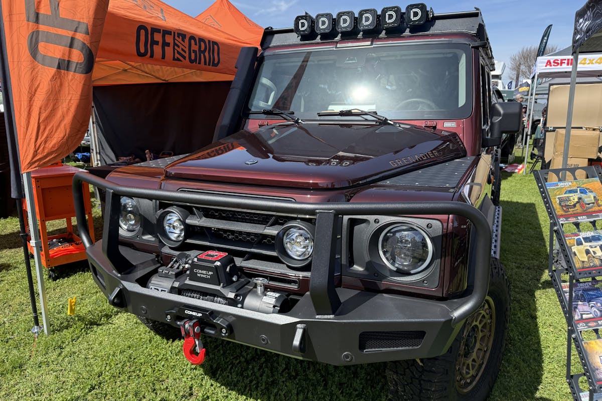 Everything Grenadier and Overland Garage 4×4 brough a trio of the most highly modified Ineos vehicles that we’ve seen yet to the Overland Expo SoCal show. The vehicles, two Grenadier and a Quartermaster, are built in very similar fashion. These builds included high-performance King off-road shocks along with new coil springs and heavy-duty control arms. Brakes are upgraded to six-piston Rotora HD calipers and slotted two-piece calipers. Tires are 35×11.5R17 Nitto Trail Grappler M/T mounted on Black Rhino wheels. All three are fit with a variety of upgraded bumpers, light bars, roof racks, tents, and accessories.