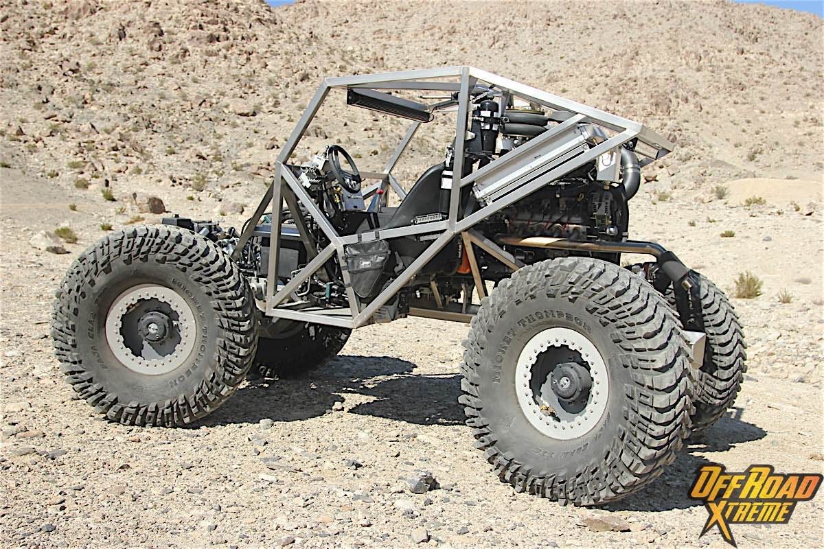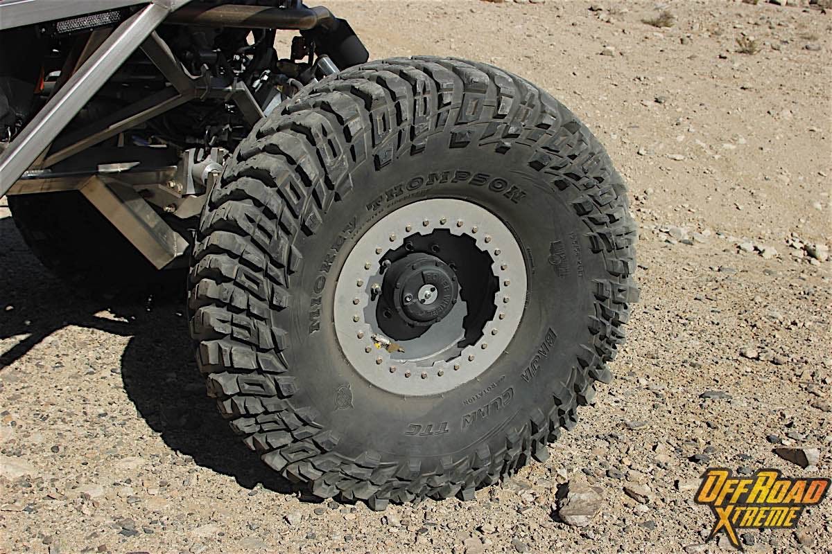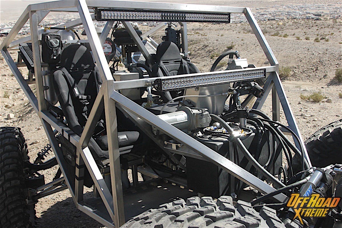 With the built-in air compressor and air bags strategically installed, the buggy can flex left to right to offer better weight distribution if needed. The massive, 54-inch Mickey Thompson tires are right at home clambering over busted rocks or gravel.