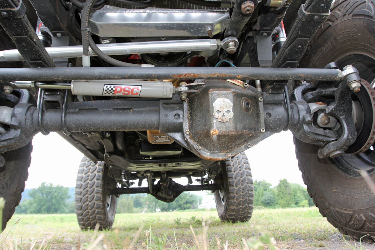 Under the rig rests 1-ton running gear. Up front is a Dynatrac Dana 60 fitted with a high-steer kit, an ARB Air Locker, and Yukon Hardcore locking hubs. It also has beefy chromoly axleshafts and U-joints. Out back is a Dana 60 with a differential spool, 35-spline chromoly axleshafts, and a Yukon Gear & Axle differential cover. Gearing for each axle is 4.56:1.