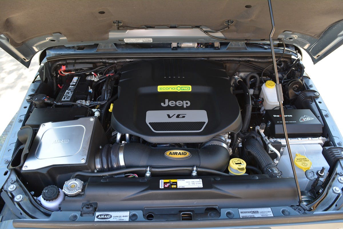 First, the Jeep’s 3.6L V6 engine was modified with an Airaid intake system, an Airaid EconoAid throttle spacer and a Fitch Fuel Catalyst. An SCT X4 programmer added simple tuning power to the Lenharts’ Jeep.