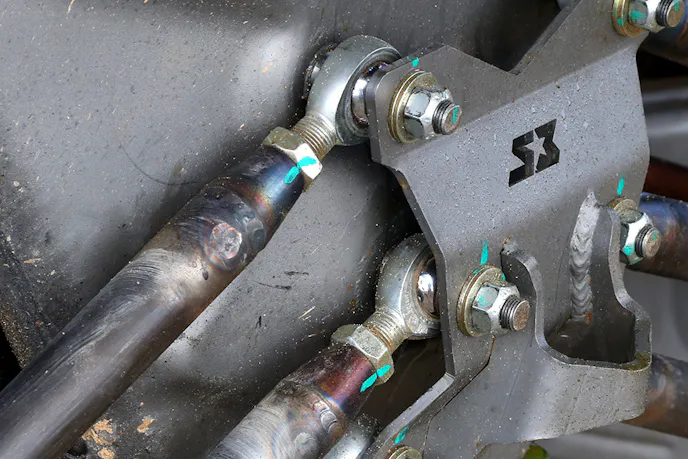 Many teams will make a mark with a grease pencil, or paint pen to show that the bolt has been checked. If you make a line that travels across the bolt, or nut and terminates on the part it is holding, you can look at it and tell if it has moved. If the lines do not meet up, something has come loose.