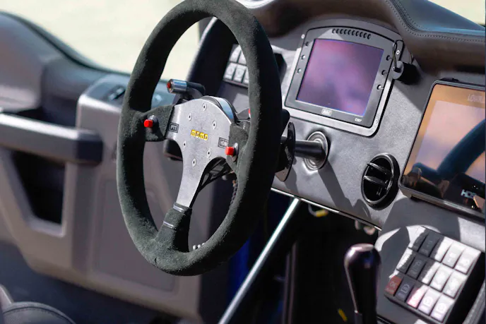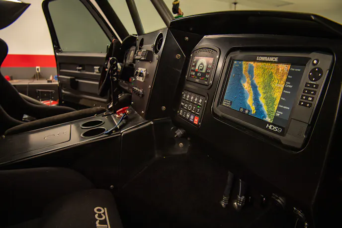“The hardest part is the design. It has to be very well thought out and easy to work on. This truck has three unique dash pods that come out and disconnect from their cannon plugs. The modular configuration is clean and makes for easy prep. We also designed it to have rapid gear changes and under drive options. It makes everything so much easier and also competitive come race time.”