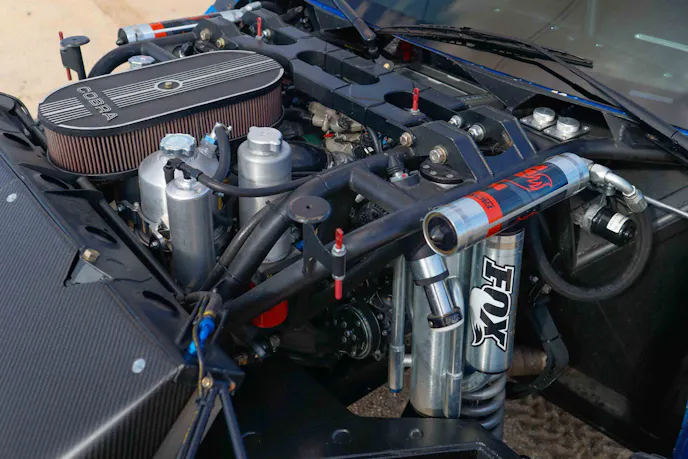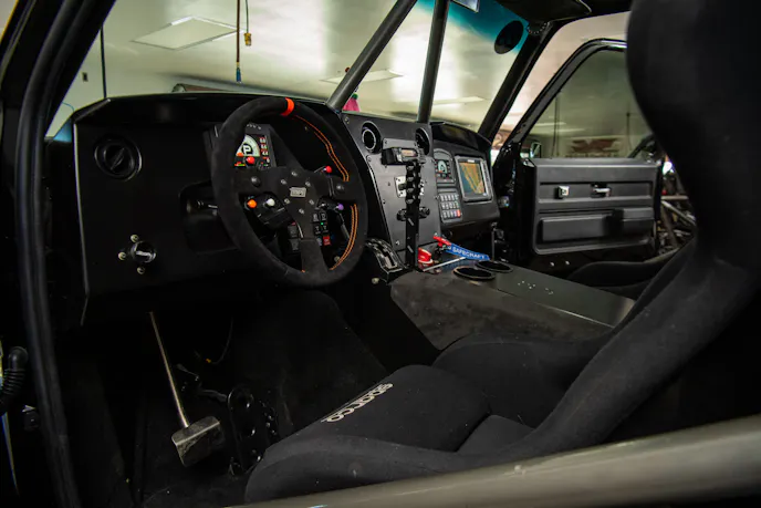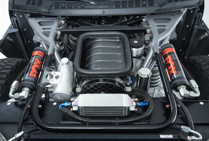 CS: I will just say it’s all top of the line and a bunch of cool stuff. This new PreRunner truck features an all aluminum big-block V8 from Dougans Racing Engines. That right there has never been done before. It runs pump gas and makes 780hp. A 6-speed sequential gearbox is controlled with steering wheel mounted paddle shifters. James Lin wired all of the electronics which are driven by a Motec. The truck is configured for three seats. The one-off body is all carbon fiber cad designed by Walker Industries. It has an air cleaner pass-through that seals to the hood offering cold clean air. Of course a windshield, air condition, and door locks are included too. This is the most impressive build ever and packaged to the max.