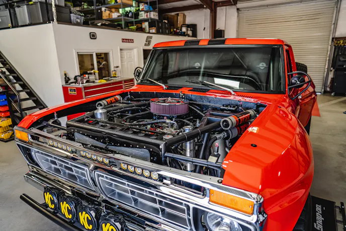 This vintage 1974 Ford F-250 sports a supercharged Coyote 5.0-liter V8, a four-link suspension, Super Duty axles, 38s, and more.
