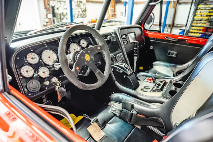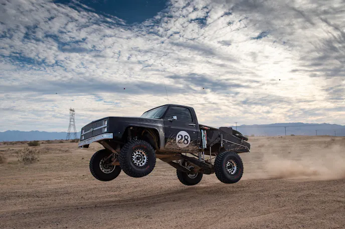 JVRP: “You must be talking about Alan Pflueger’s 1981 C10 NORRA race truck. We started with a TSCO 6100 bulkhead and front clip. I punched that into the truck’s stock frame rails. It fits the nostalgic criteria, has the classic look, but with modern trophy truck performance. It is super unique! Pushing out 680hp at the crank, the truck with body weighs 6100lbs wet and race ready.”