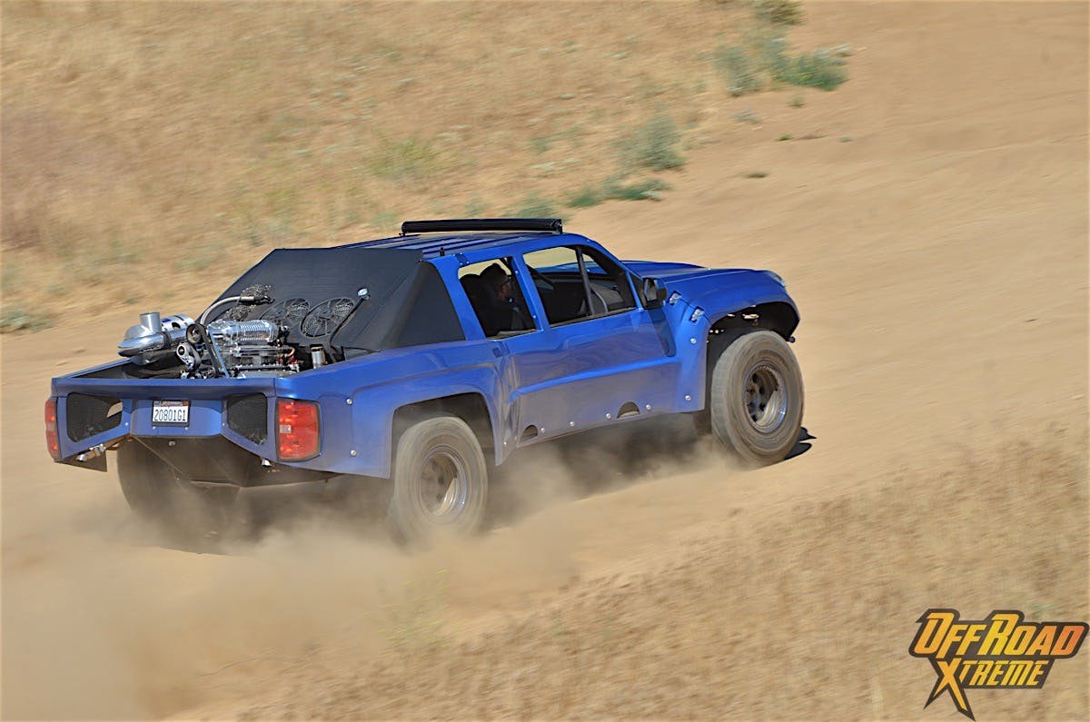 The Desert Dynamics chassis is TIG welded and the Off Road Dynamics control arms give the truck one heck of a stance. Sway-A-Way coilovers and triple-bypass shocks sit in all four corners.