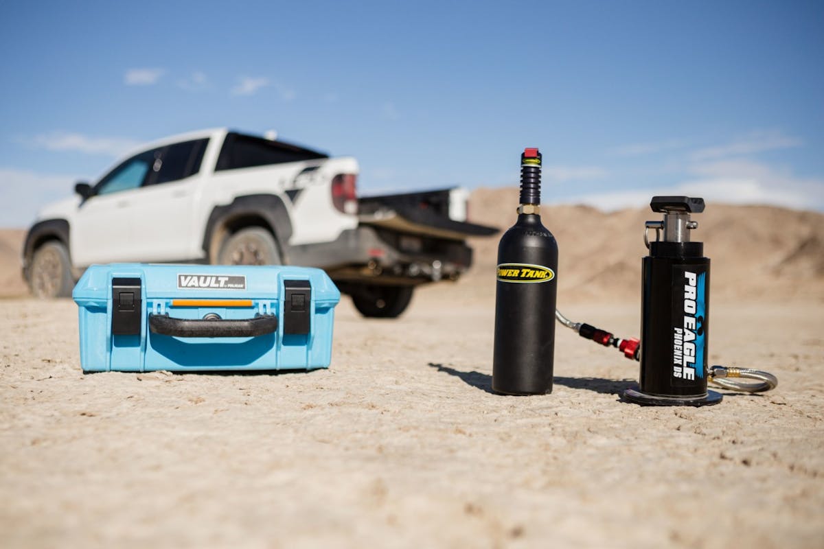 When it rains it pours and with flat tires you are almost guaranteed to get one on the trail in the roughest section. Getting a lift to stabilize on soft ground can be difficult if not impossible. The hassles of carrying large jacks with limited lift points can turn a trail trip into a painful engineering project. Thankfully, Pro Eagle has you covered with their new Phoenix Dual Stage Co2 powered air jack!