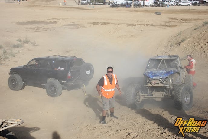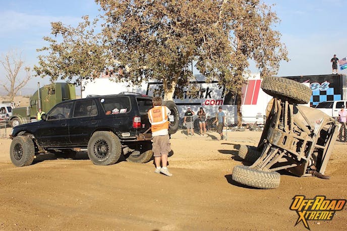 Matt and his 4Runner made for quite a pair at the Glen Helen races, as we mentioned before. On two separate occasions, racers had come in too hot around a corner and stopped upside down. Inverted cars pose a danger if not put upright immediately, which was what guys like Matt are needed for.