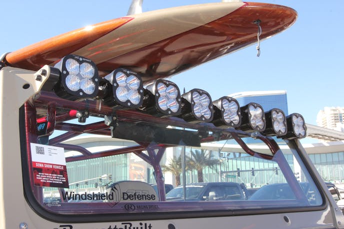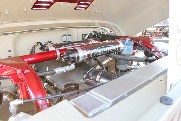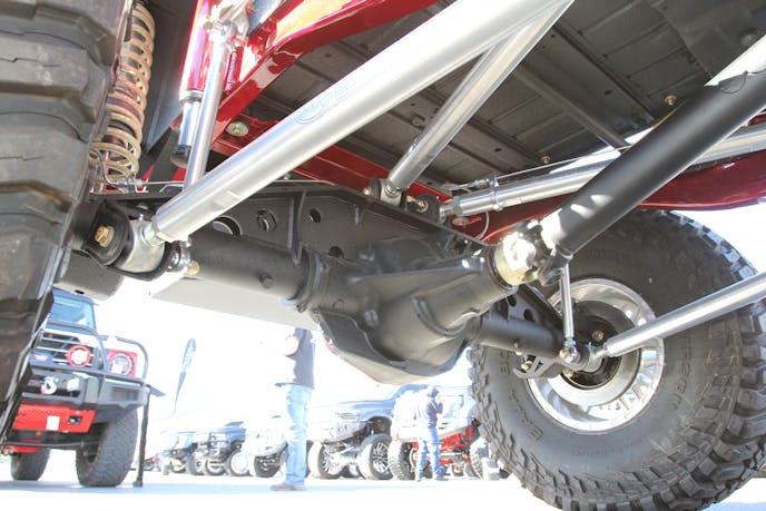 Out back, the Ford 10.5 axle was shifted six inches rearward and mirrors the front with an Eaton Detroit Locker and 5.38:1 Revolution Gear & Axle gears and diff cover. It’s also fitted with a Stage 8 locking axleshaft bolt kit and an Artec truss.