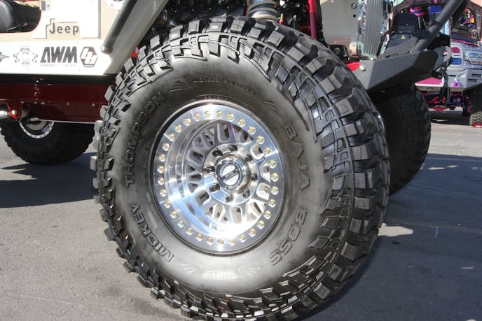 Putting power to the dirt are 40×13.50R17LT Mickey Thompson Baja Boss M/T tires wrapped around 9-inch-wide Raceline Ryno beadlock wheels.