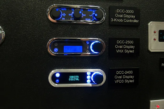 The controllers range from a dial style, the DCC-3000, to the DCC-2500, and DCC-2400  which would match other Dakota Digital products installed.