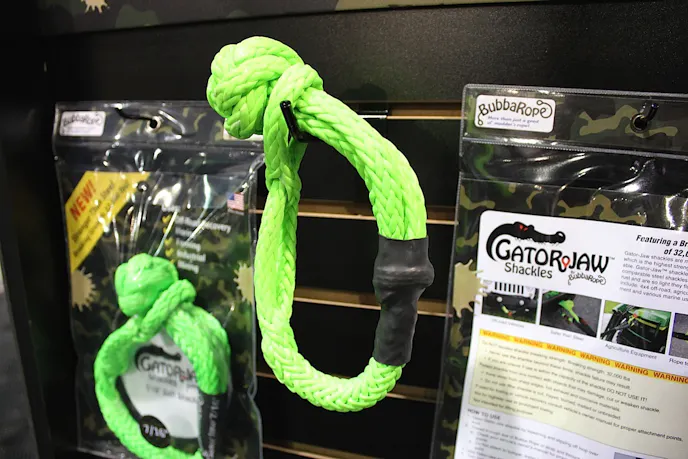 The inaugural day of the 2014 SEMA Show was a lively hustle and bustle that saw thousands of media folks, vendors, buyers, and sellers roaming around to see or show off their latest wares. The South Hall’s second floor was the place to be for fresh off-road products and designs, which was where we found Bubba Rope’s booth and with it, the “Gator-Jaw” soft shackle line.