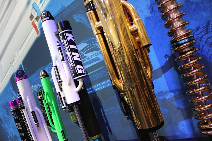 Finally, for some eye candy, we had to check out King’s display of custom finishes, including a 24K Gold plated bypass shock – true eye candy.